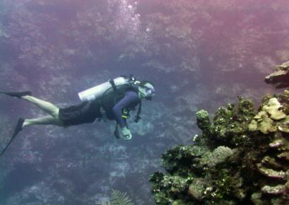 Dropped down to about 95' and spent some time swimming along the wall. Visibility was great and I spotted a Hawksbill Turtle. Water temperature was a comfortable 82F. Really a nice site.